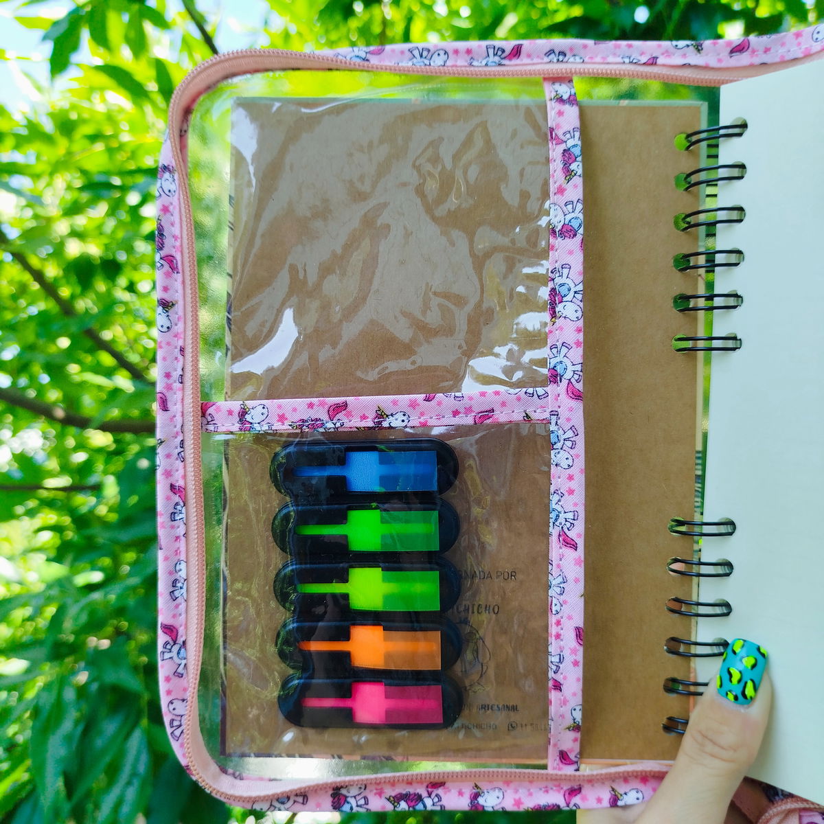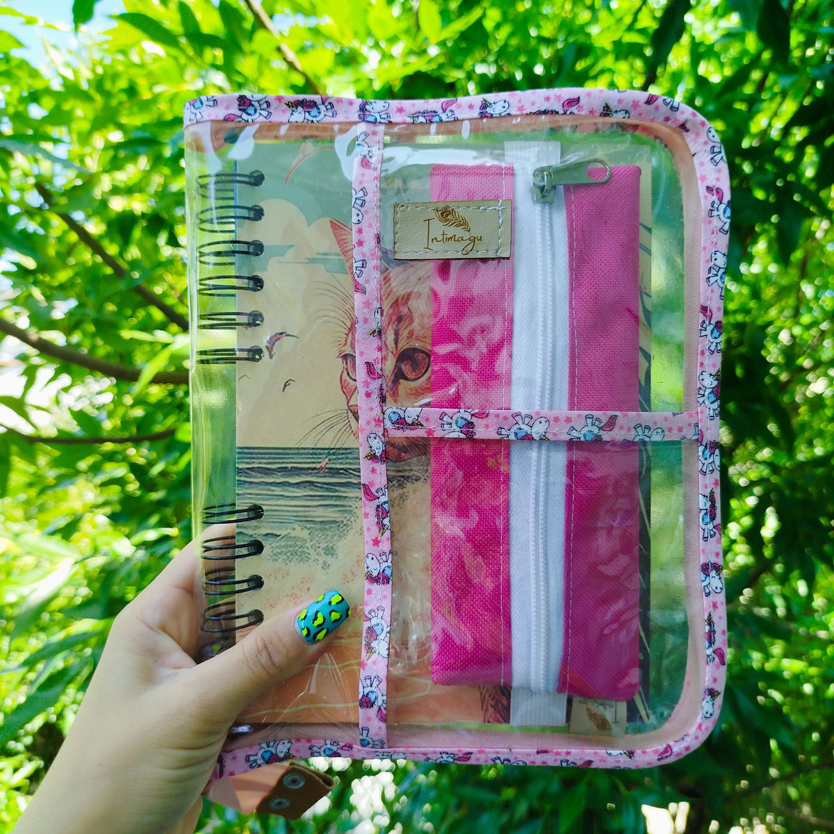 Porta agenda/cuaderno 📒📚📕tamaño A5 de nylon cristal con cierre de Intimagu 🌿